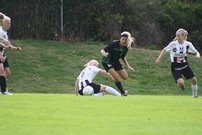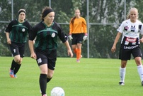 Ottelu alkoi erinomaisesti. Saimme aloituksen ja se tuotti heti pitkän syöttöketjun ja tepsin tytöt juoksivat perässä. Voi sanoa, että se orastava kehitys alkaa näkyä kentällä. Palloa uskallettiin pitää ja rakennettiin peliä linja kerrallaan kovilla täsmällisillä syötöillä. Pallo liikkui ja katsomossa yleisö ihmetteli, että onko tämä vihreä-musta se jumbo joukkue. Tasoeroa ei vastustajaan ollut. Ottelu eteni tasaisissa merkeissä ja hallinnasta taisteltin tosissaan. Meillä oli peli hyvin hallussa ja sitten vastustaja käy tekemässä ekasta tilanteestaan maalin. Sen jälkeen saimme läpiajon jonka vastustajan toppari liukui viimehetkellä Essin jaloista. Toisesta läpiajosta sitten Essiltä vedettiin tylysti jalat alta ja saimme rankkarin. Oletin että Jutta laukoo kun viimeksikin sijoitti pallon maaliin rankkarista. Tiia päätti kuitenkin ampua itse, joka oli vähän kyseenalaista koska maalissa oli hänen paras kaveri. Tiialla toki on hyvä potkutekniikka ja oletin, että myös hän sijoittaa pallon maaliin. Nyt vaan hermot eivät kestäneet vaan pallo taivaan tuuliin. Muitakin hyviä paikkoja oli, mutta niistä ei vaan palloa saatu maaliin. Omissa sitten soi toisen kerran kun vaaraton keskitys päätyi vastustajan jalkaan maalin edessä hutipotkun seurauksena. Peli oli kuitenkin niin hyvällä mallilla, että mitään muutosta ei ollut syytä tehdä vaan pitää huoli, että pelaajat jaksavat uskoa tekemiseensä. Tällä kertaa tauolla oli vahva usko siihen että vielä noustaan voittoon.
